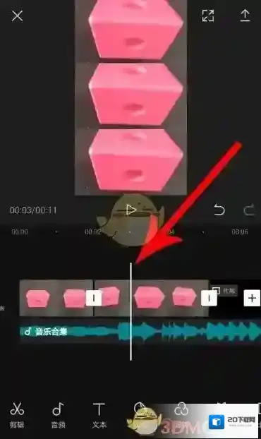 1、打开剪映的视频剪辑界面,拖动白色时间线至视频素材分割位置