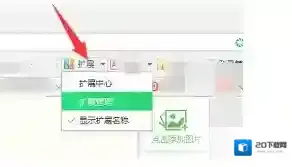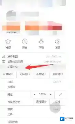 2、这里就需要用到工具了,点击浏览量的扩展,扩展中心,浏览器不同扩展中心的位置也不同,找找就可以了;