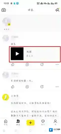 6、最后发布的动态会显示我们输入的文字,并且下方是一个听歌。