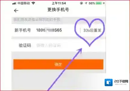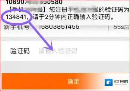 5、然后就是要将手机收到的验证码准确的输入APP指定位置,注意的是如下图箭头所标识的位置,然后点击确定。