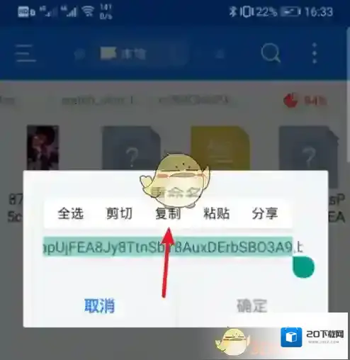 5、打开ES文件浏览器,找到生成的表盘文件,长按后选择复制。