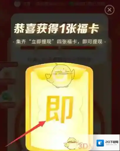 4、这样就可以获得福卡了,集齐立即提现四张卡,就能直接提现500元哦!