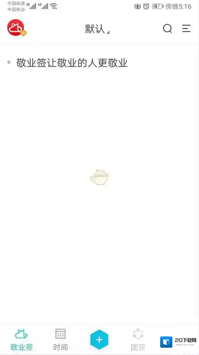 1、在安卓手机上打开并登录敬业签,在主界面底部靠下的位置找到“+”按钮进行点击;
