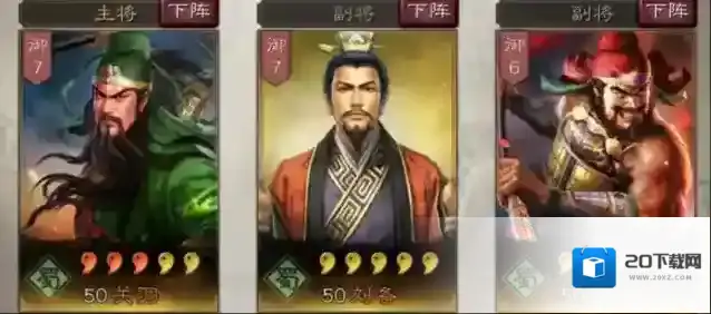 3. 缘分组合:关羽+张飞+刘备(统御20)