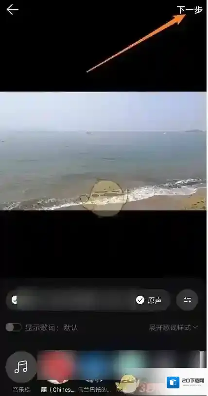 5、选择图册中的视频,加上配乐,点击下一步即可进行发布操作。