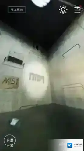 从墙壁上可以看到四个符号的顺序,大家记住这个顺序。然后点击屏幕左下角的“下潜”按钮潜入水里。