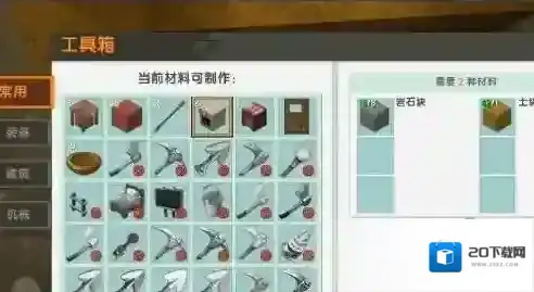 4、当玩家获得土块跟岩石块后,接着还需要道具工具箱,工具箱可以通过果木板×6制作获得。