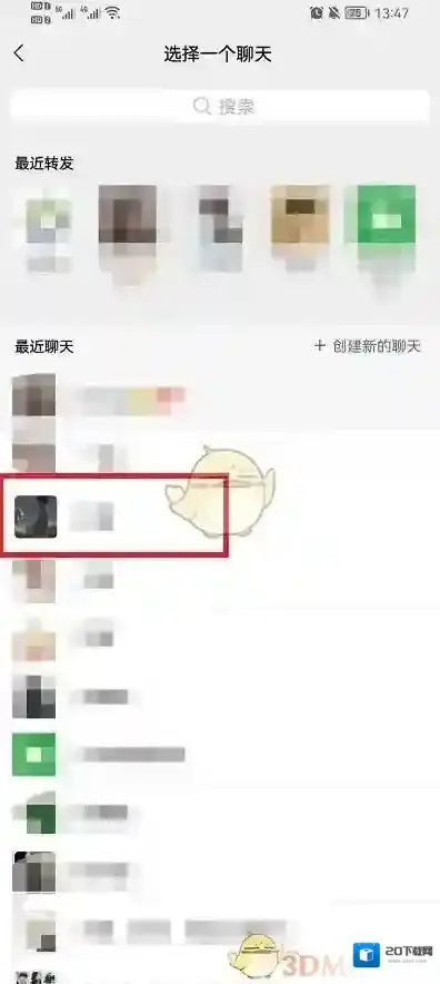 4、最后会跳转到微信选择聊天界面,可以找到自己另一半的聊天框,点击发送给好友。