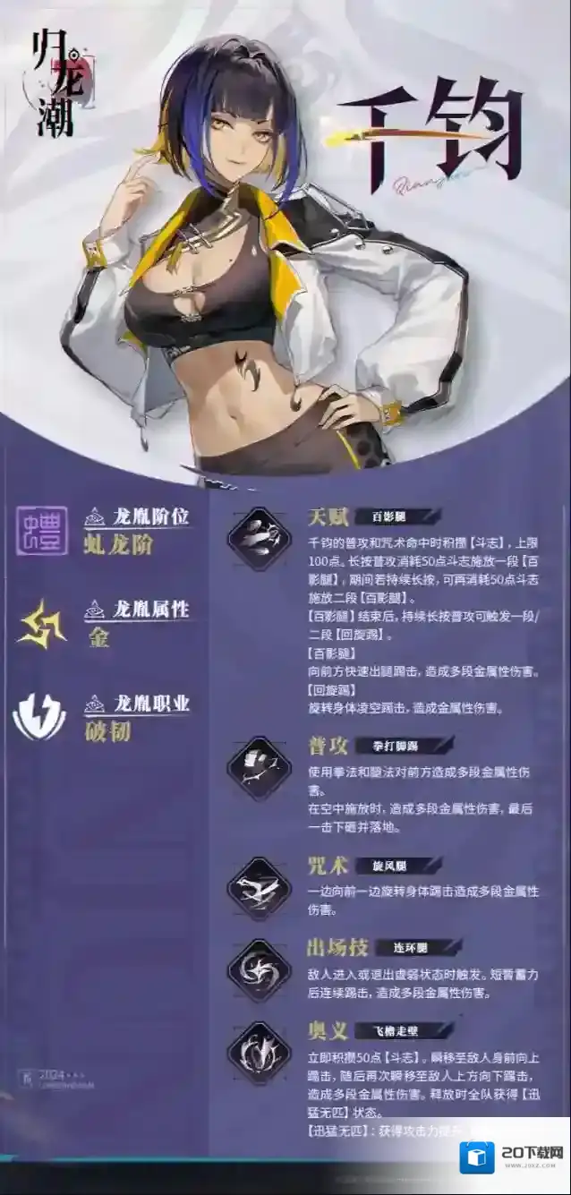 归龙潮千钧怎么样 归龙潮千钧角色介绍 2025-07-29 07:47:42 编辑: 寒夜孤独 分类: 手游攻略 • 阅读: 211 归龙潮千钧怎么样 归龙潮千钧角色介绍 归龙潮千钧角色介绍 //中浦区 ♢ 虬龙阶龙胤「千钧」「活动拳脚的地方,统统都是健身房。」 ✦龙胤阶位:虬龙阶 ✦龙胤属性:金 ✦龙胤职业:破韧 发表回复 请登录后评论... 登录后才能评论 评论列表 ( 0条)