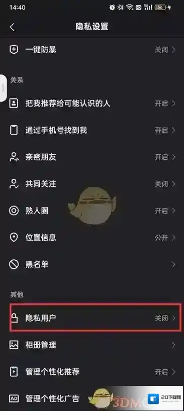 4、来到隐私设置的页面之后点击隐私用户;