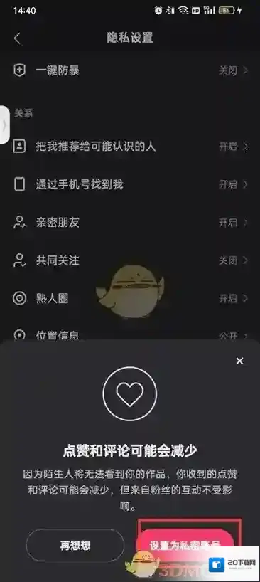 6、点击过继续之后在点击设置为隐私用户即可。