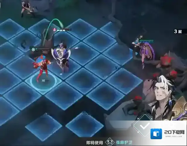 下个回合,雪拉挪动到被勾引过来的盗贼后方补刀,再让莫尔顿使用技能强盾护卫保护雪拉后回合结束。