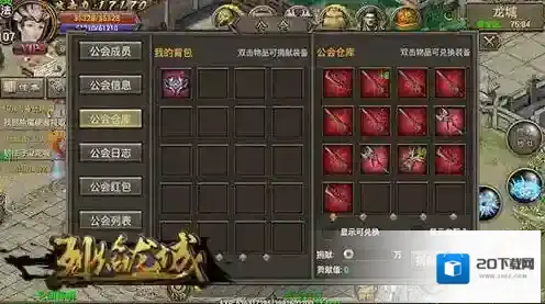 如果玩家的进度落在了大部队后面,打BOSS占资源将非常困难。那个还有另一种获得装备的方法。加入公会,公会仓库中将会有很多公会成员的多余的装备,他们替换下来投入公会仓库以获得贡献,同样也可使用贡献兑换公会仓库中的装备。