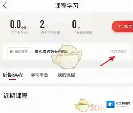 4、进入课程学习,找到下方的学习记录,点击学习记录进入