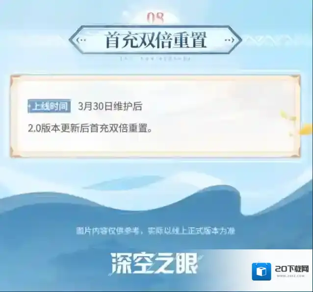 深空之眼2.0版本多维变量全新改版 2.0版本更新后,多维变量玩法将迎来全新改版! 新版的多维变量将以每版本为一个赛季刷新,在赛季内进行探索挑战即可完成任务并获取奖励。管理员也将邂逅各式各样新奇的记忆珍宝来应对探索过程中遭遇的挑战。当然,里面也有修正...2025-08-22 -