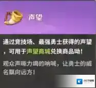 (1)声望:兑换消耗声望点数 获取方式:每日挑战竞技场 竞技场(每日 赛季)排名越靠前,获得的声望越多