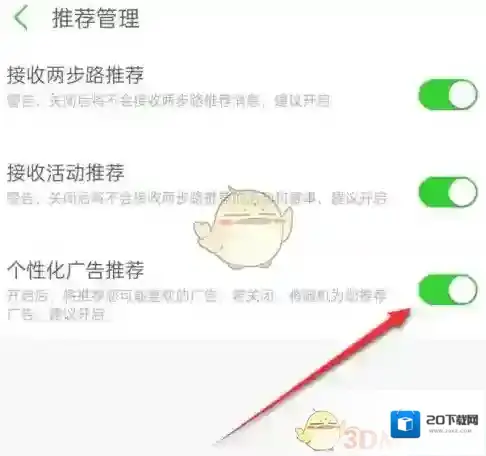 5、找到个性化广告推荐,关闭右侧开关即可。