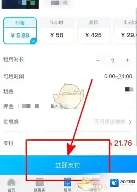 3、进入租号界面后,选择想要租赁的时间,然后点击立即租号按钮。