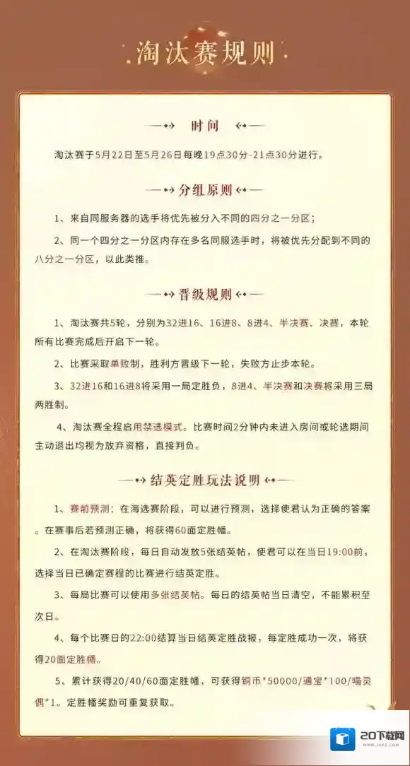 「淘汰赛:5月22日至26日每晚19点30分-21点30分」