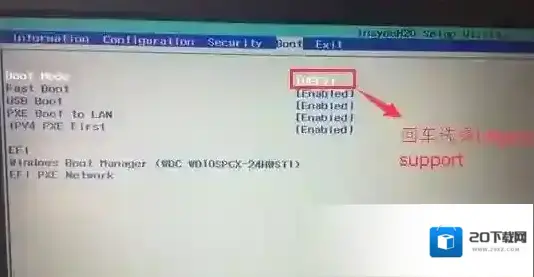 4、切换到Boot,把Boot Mode从UEFI改成Legacy Support,改传统引导,如下图所示;