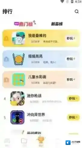 4、点开排行,提供了热门榜、新品榜,玩家可以根据榜单选择玩耍。