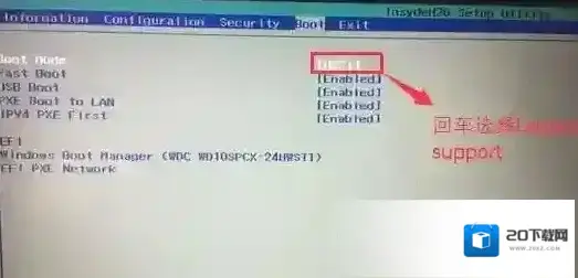 4、切换到Boot,把Boot Mode从UEFI改成Legacy Support;