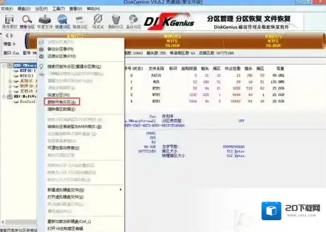 2、之后进入Win10PE里就可以了。第四步:更改分区模式1、打开Diskgenius分区工具。点击“硬盘”-“删除所有分区“,然后保存一下;