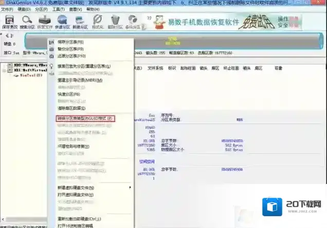 2、还是点击硬盘,然后选择分区表为GUID格式;