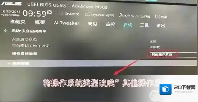 3、再返回到”安全启动菜单”的选项,将操作系统类型改成”其它操作系统”,如下图所示;