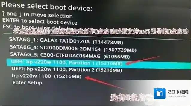 5、插入U盘启动盘,重启按ESC选择识别到U盘启动项,回车;
