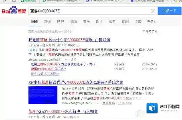 6、然后在百度输入相应的代码,就会出现你想要的解决方法了,例如代码0×0000007E,我们只需输入蓝屏0×0000007E即可