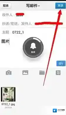 6、添加到邮件后,编辑好邮件的内容,然后点击页面右上角的“发送”即可将照片发送给好友了。