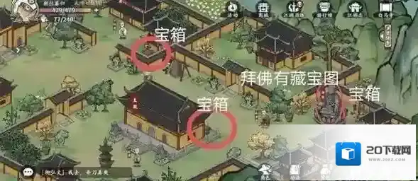 17、中间有两个宝箱,右边的佛像后面有一个宝箱,拜佛有藏宝图。