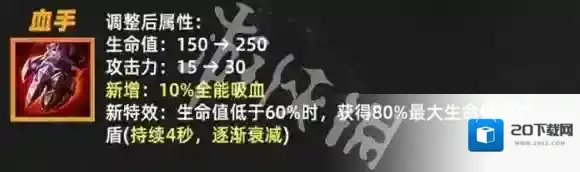 4、新特效:生命值低于60%时,获得80%最大生命值的护盾(持续4秒,逐渐衰减)