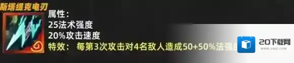 3、特效:每次攻击叠加5%攻速,每5次攻击额外获得4攻击力和5法强。