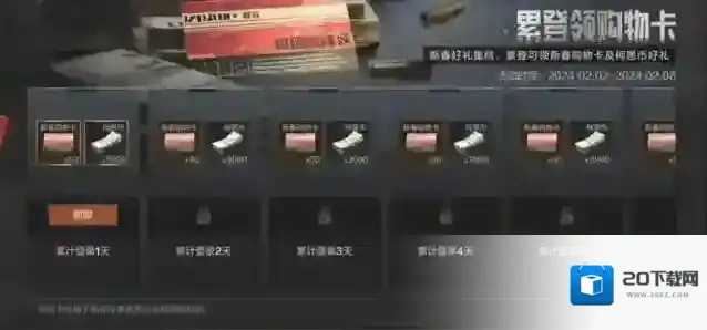 活动期间,累计登录暗区即可在活动中心界面领取购物卡与柯恩币奖励!只需完成累计登录,共可获得350新春购物卡!