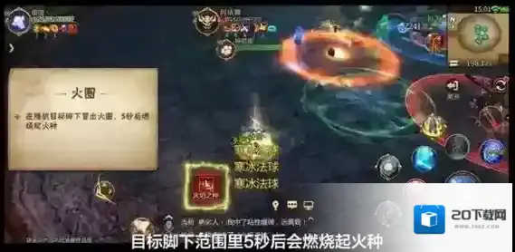 第二个,火圈,目标脚下范围里5秒后会燃烧起火种。