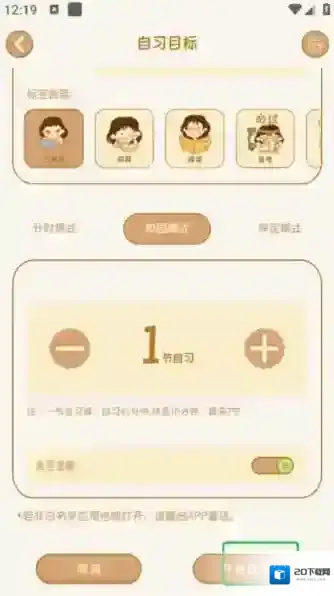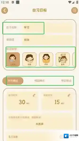 5、选择座位后,用户需要填写自习名称、选择标签和自习模式。