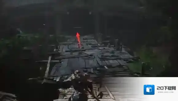 2、然后从这里的木桥一直走过去。