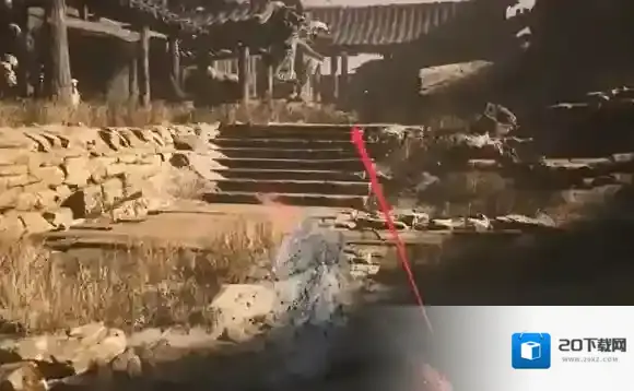 1、玩家在消灭地狼之后向前面的亭子方向走去。