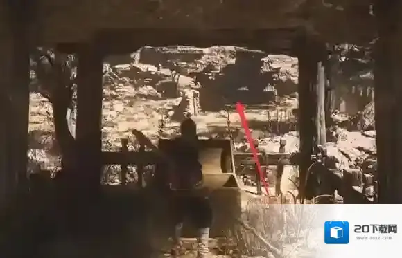 继续向下走,来到如图的位置。可以在屋子里面找到宝箱。