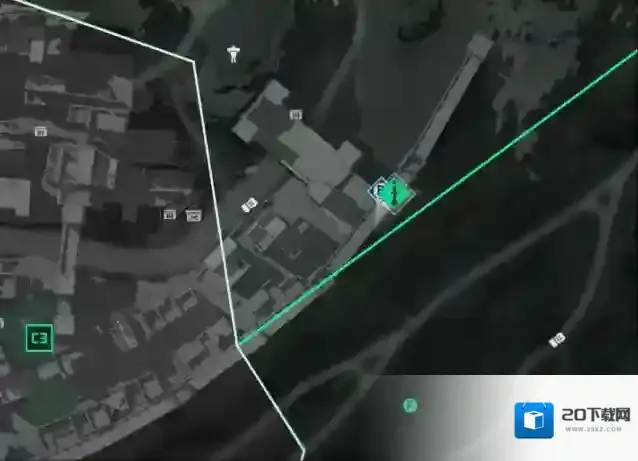 来到图中标志的位置,可以在两个绿色房子的中间看到任务点。