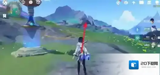 从伦波岛七天神像位置出发,往右上角草地处的传送锚点走。