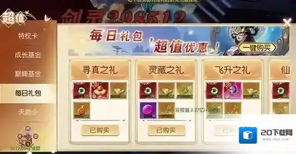 超值返利中拥有永久经验加成道具,最值得选择是超级升级丹。超级升级丹的效果是200级以前使用直升1级,200级以后使用获得26.5亿经验。而法宝器灵道具其实也不错,可永久提升25%经验加成,冲级霸榜必备的选择。