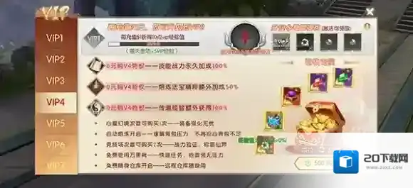 无论是什么类型的游戏,VIP都是一个至关重要的东西。这在这里,VIP4能提供100%的传道经验加成,同时游戏中的副本次数也会增加。而这样的特权在游戏前期就会产生出很大的优势,从而在前期就能拉开很大的差距了