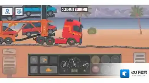 游戏中是以2D的形式进行驾驶,只需简单的控制档位,并点击刹车和油门控制速度即可,更加方便玩家完美的执行好运输任务。同时,我们需要自己选择路线前往装货点,并操控机械手将货物安全的装入卡车当中,然后继续开启运输之旅。