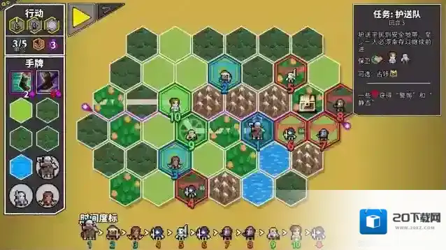4、正式开始战斗后左侧是玩家可以使用的手牌,你的目标会在右上方显示,每回合可以使用两张卡牌。