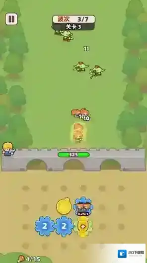 3、点击战斗后齿轮会转动来召唤小兵,小兵会自动消灭出现的怪物敌人。