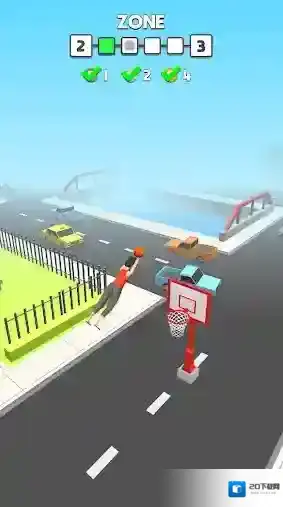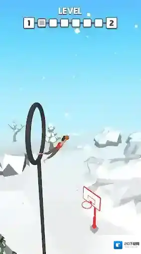 2、游戏的关卡难度逐渐增加,玩家需要通过各种道具在空中进行翻转,将篮球帅气的扣进篮筐。