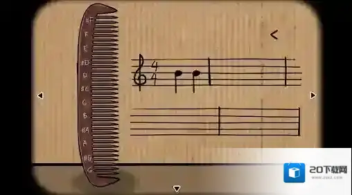 1、梳子视角:点击梳子,根据果实视角纸箱上第二张布胶带图片的提示,用梳子演奏“B→B→D→D→B→B→#G→A→B→D→B→A→#?G→A”,最前面的音符上出现了一把(银钥匙)。